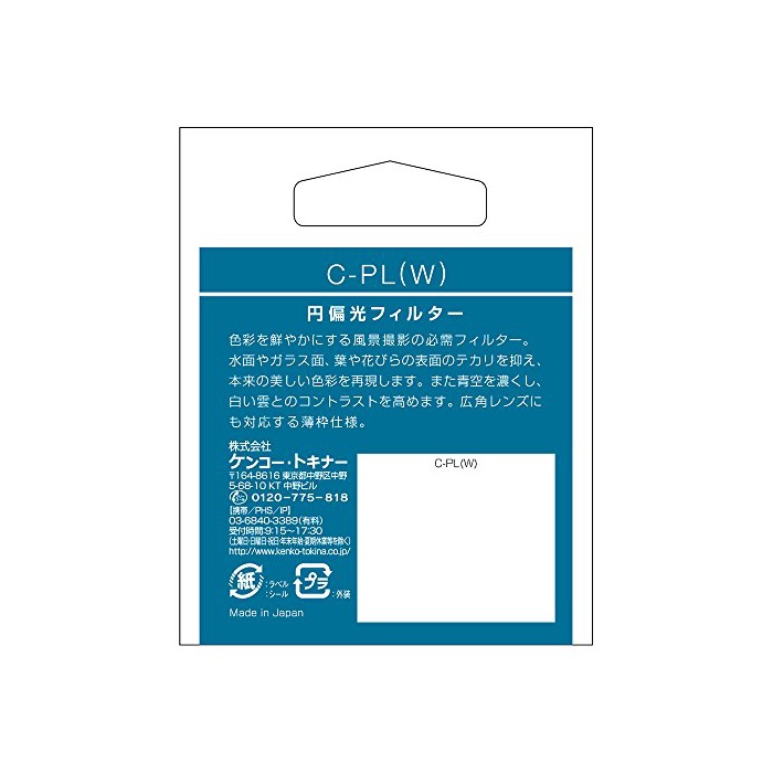 원본상품명: Kenko PLフィルタ サキュラPL(W) コントラスト反射調整用 薄