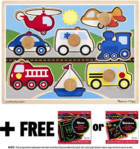 -. Binding : Toy -. Brand : Melissa & Doug -. EAN : 9899999536185 -. Feature : ONE FREE Melissa & Doug Scratch Art Mini-Pad is bundled with this item. The style of the mini-pad you receive is randomly picked. The Scratch Art Mini-Pad is considered a FREE bundled item. If you return this item, please return it as well. / Extra-thick 8-piece wooden puzzle / Jumbo wooden knobs for easy grasping. Bright colors and illustrations of familiar objects. / A perfect activity to encourage hand-eye coordination and visual perception skills / Sturdy wooden construction. For age 1+. -. IsAdultProduct : 0 -. Label : Melissa & Doug -. Manufacturer : Melissa & Doug -. Model : 8980 -. MPN : BCC9M6185 -. PartNumber : BCC9M6185 -. ProductGroup : Toy -. ProductTypeName : TOYS_AND_GAMES -. Publisher : Melissa & Doug -. Studio : Melissa & Doug -. Title : Vehicles: Jumbo Knob Puzzle + FREE Melissa & Doug Scratch Art Mini-Pad Bundle [89807]