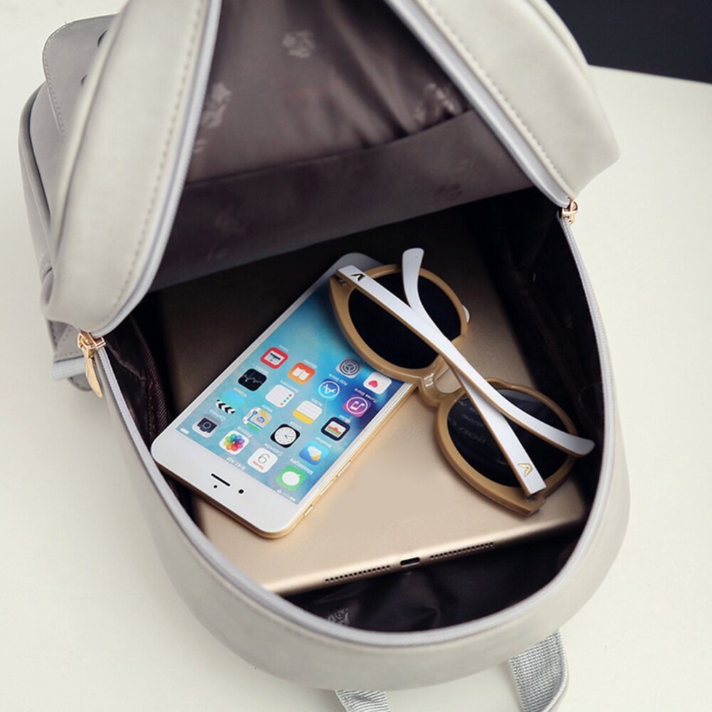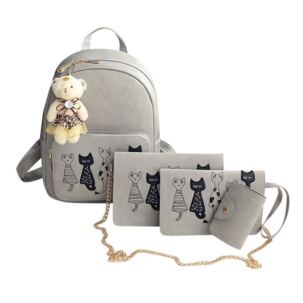 Product details of 4pcs Cat Printed Girls PU Leather Backpack with Shoulder Bag Clutch Purse(Grey)
