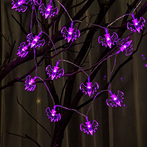 [2017 New Improved] HAYATA Bat String Lights 20 LED 7.2ft Battery Operated Halloween String Lights for Indoor, Holiday, Party, Festival, Halloween Decorations (Purple)