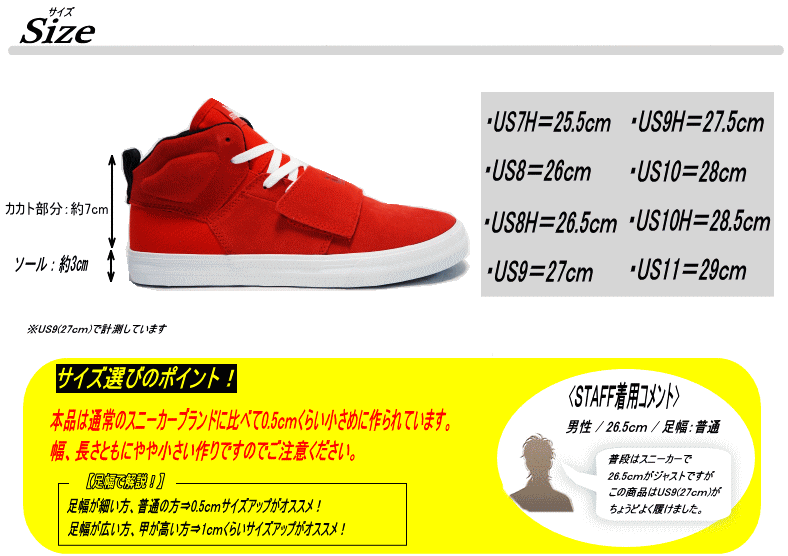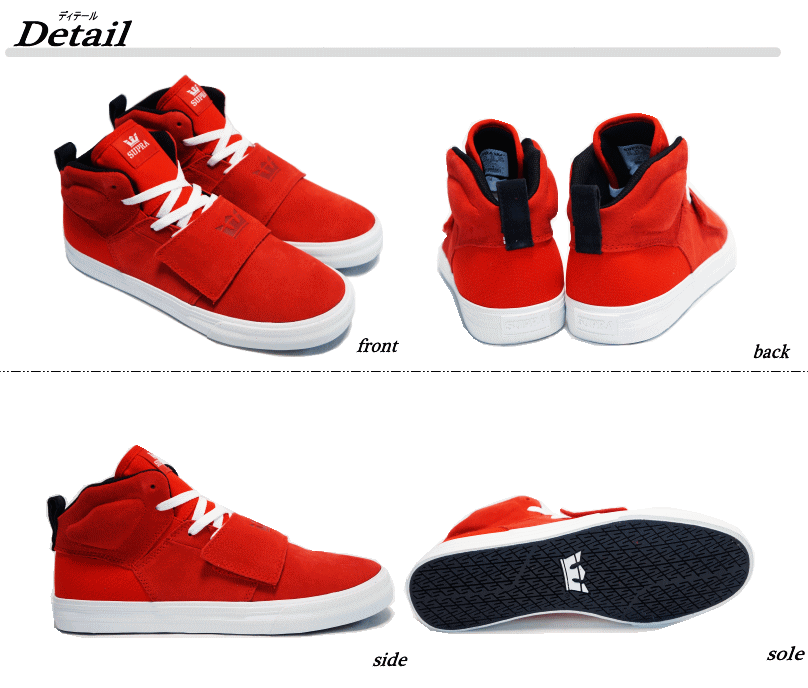 | 商品説明 | <BRAND STORY> 2006年、アメリカのカリフォルニアで誕生したスニーカーブランド。その斬新なデザイン、高い機能からリアルスケーターはもちろんのこと、数々のラッパー、DJ、アーティスト、NBAプレイヤーなど、セレブ達がこぞって愛用している事でも有名である。 <ITEM INFO> ・SUPRAニューモデルの『ROCK(ロック)』はパネル型のパーツで形成されるシンプルなアッパーのシルエットの中に、柔らかく大型のベルクロストラップやアンクルのクッションポッド、サイドゴアバンドなど様々な要素を追加した一足。 ▼ SUPRA製品について ▼- 必ずお読み下さい - SUPRA製品は、ブランドの特製上、ファッション性を強く意識しているが為、物によって作りが荒い物もあります。ブランド志向が強く、細部のクオリティーまでこだわる方には、あまりオススメ出来ません。縫製が荒い物、接着剤のはみ出し、アッパーの多少の汚れ、靴ヒモへの色移り、スウェードの擦れ、インソールの浮きやズレ、品質にムラがある場合が御座います。これらは、SUPRAブランドの製品の特性上の事ですので、予め、ご了承の上、お買い求め下さい。 |