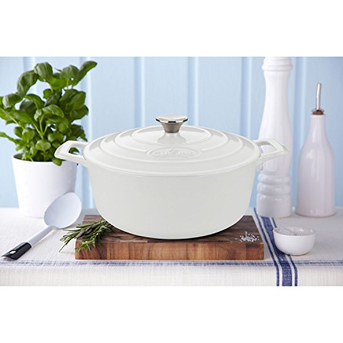 La Cuisine's Round 3.7 Qt. Cast Iron Casserole can be used to rustle up all sorts of mouth-watering dishes cooked on the stovetop or in the oven. La Cuisine's cast iron cookware is crafted using sand molds, which are used only once, forging a lighter product with a very fine enamel finish that is truly unique. Wonderfully versatile, La Cuisine's round casseroles are suited to the oven and all cooktops, including induction. Food heats through evenly and remains hot until served. The non-toxic cream enamel interior surface gives excellent food release that improves through continued use, and is simple to clean – just wash in warm water. Whatever your skill level, La Cuisine is perfect for no-fuss, healthy cooking and looks great as it goes straight from cooking on the stovetop or in the oven to serving at the table or buffet (our trivets, sold separately, are recommended for table/buffet use).Feature