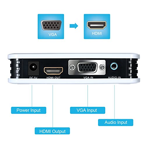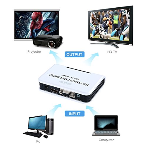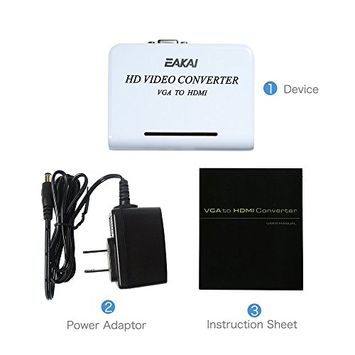 EAKAI VGA to HDMI Video Converter Active 3D 1080P HD Video Scaler Converter Box with 3.5mm Audio Port for HDTV Monitor Projector Display