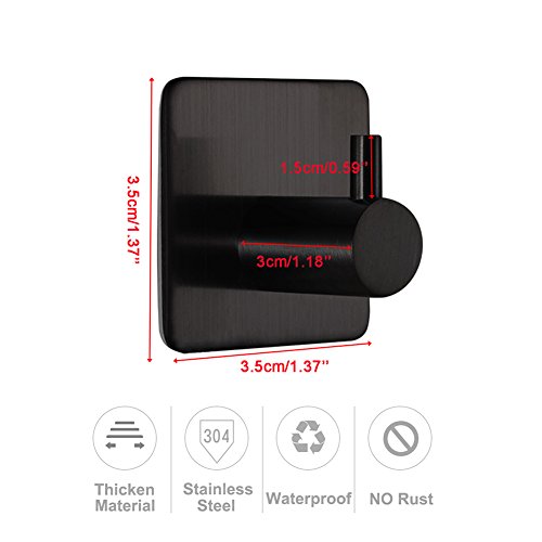 BQTime Modern 3M Self Adhesive Hooks Stainless Steel Towel Robe Coat Cloth Bag Key Holder Hanger(2 Pack Single Hook), Heavy Duty, Wall Mounted, Waterproof, Kitchen Bathroom Shower Accessories, Black