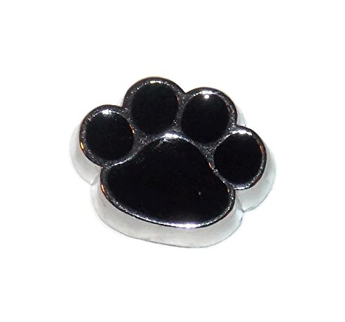 Black Paw Print Charm for Floating Locket - Old School Geekery TM Brand Locket Charms - Puppy Kitten Cat Dog Paw Pad Print