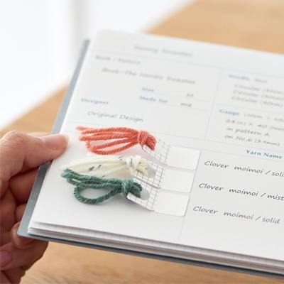 好きな所に糸の実物サンプルを貼り付けられる専用シールです。極細~並太の毛糸に対応しています。毛糸のラベルの管理など色々な使い方ができて便利です。1回分を手で切り取れば、どこでも簡単に糸見本を貼る事ができ、余白スペースに、毛糸名や色番号などの情報を書き込めば、より分かりやすく、お使いいただけます。 |