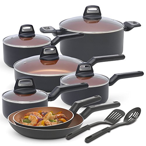BLACK+DECKER 83375 14 Piece Durable Titanium Nonstick Interior Cookware Set, Multi-Size, Copper