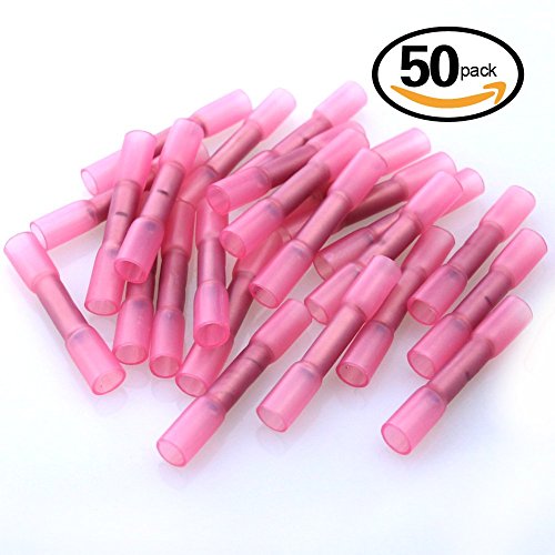 Glarks 50pcs 22-16 Gauge Butt Splice Nylon Heat Shrink Waterproof Quick Disconnect Electrical Insulated Crimp Terminals Connectors Assortment Kit