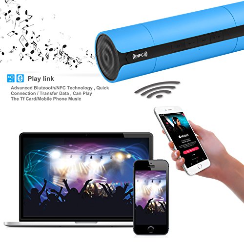 -. Feature : Smart voice prompt; replaceable battery, long service life of battery; be convenient. Built-in NFC sensor technology; support connection with NFC function; realize rapid Bluetooth matching in interaction within close distance. / Support USB flash dask, and TF card, music play in formats like MP3 and WMA and so on; multiple-functional voice box with audio input, wireless connected play. / Design theory of tumbler; no matter how the cylinder voice box turn over, finally, the display screen will face towards you when stopping manifesting humanistic design. / Fashionable, high-end, and elegant design, 3D surrounding decoding, dual track three-dimensional voice, unique tune trope structure make sound effect outstanding among voice box at the same level; / Be applicable to outdoor travelling, sports, recreation, plaza dancing and school teaching; fashionable and high end appearance and exquisite packaging are best presents; be approP.R.Iate for furnishing and decoration.
