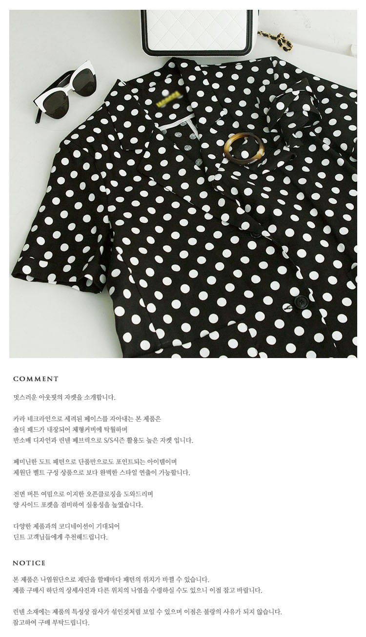 J-4974 르누 레트로 도트 린넨 자켓(벨트set) Ivory