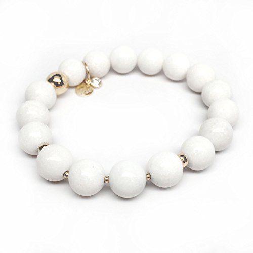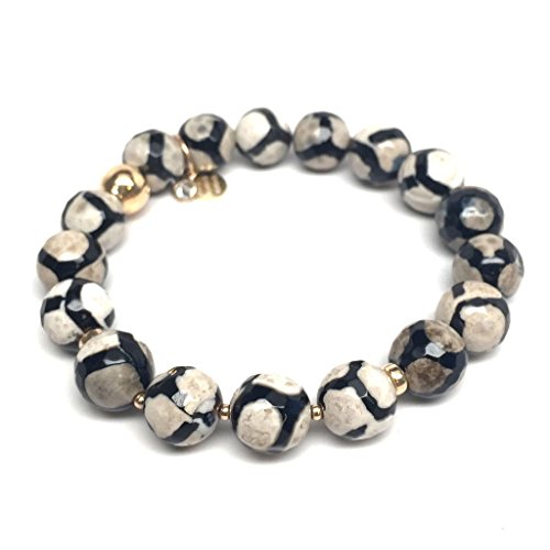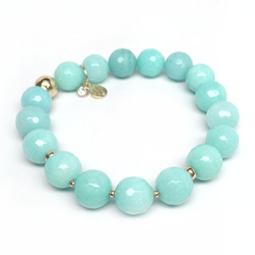 -. Feature : 10mm gemstone / 7" Stretch Bracelet / 14k over brass / Available in: black onyx, green amazonite, white agate, aqua agate, blue river stone, white river stone, black and white agate