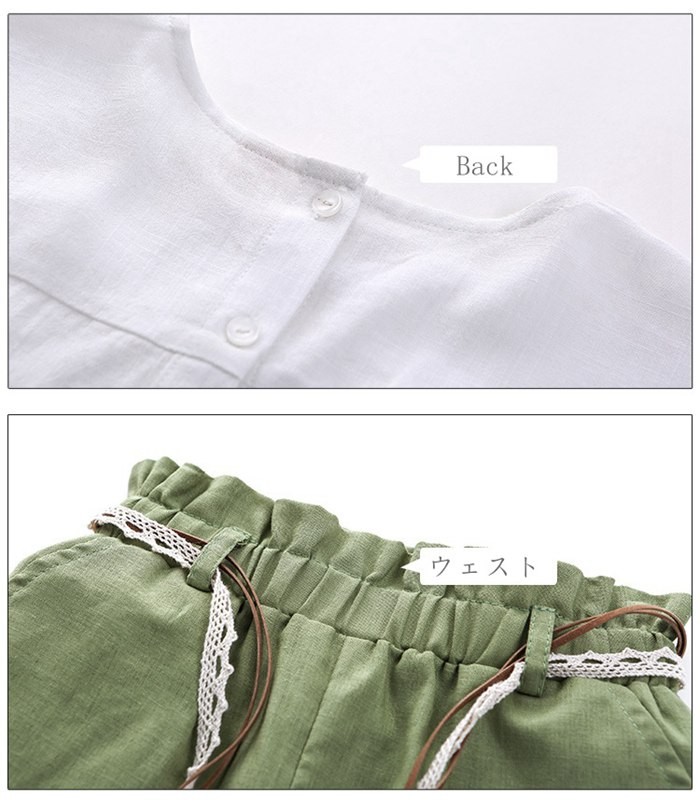 【製品仕様】■商品説明・上下セットでおしゃれに着こなす!~・後ろが長いトップスでとても人気なデザイン!~♪・お出かけにぴったり!■サイズ/寸法平置採寸トップス【90】袖丈:18cm バスト:35cm 総丈:40cm【100】袖丈:20cm バスト:36cm 総丈:43cm【110】袖丈:22cm バスト:38cm 総丈:45cm【120】袖丈:24cm バスト:39cm 総丈:48cm【130】袖丈:26cm バスト:41cm 総丈:50cm ボトムス【90】ウェスト:22cm 総丈:24cm【100】ウェスト:22cm 総丈:25cm【110】ウェスト:24cm 総丈:27cm【120】ウェスト:24cm 総丈:28cm【130】ウェスト:26cm 総丈:30cm■素材/材質綿麻■色ホワイト