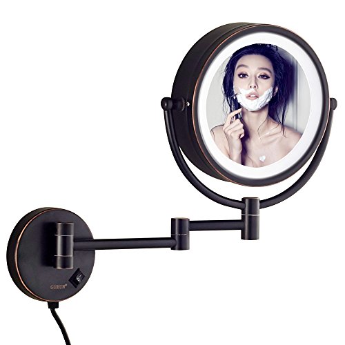 GURUN LED Lighted Wall Mount Makeup Mirror with 10x Magnification,Oil-Rubbed Bronze Finish, 8.5 Inch, BRASS,M1809DO(8.5in,10x)
