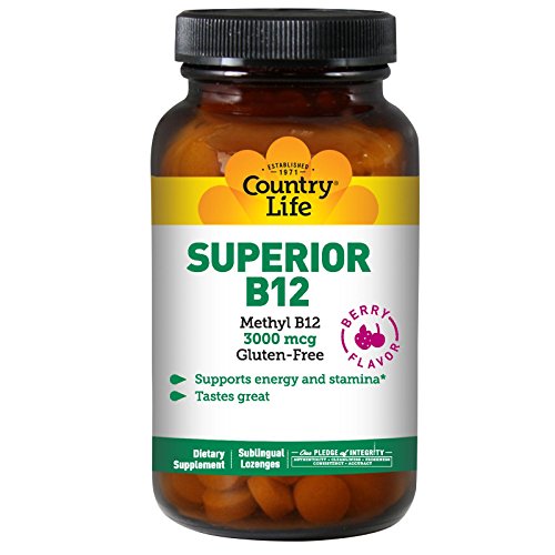 -. Feature : Country Life Superior B-12 3000 mcg 50 Lozenges / Berry flavor / Supports energy and stamina / Gluten free