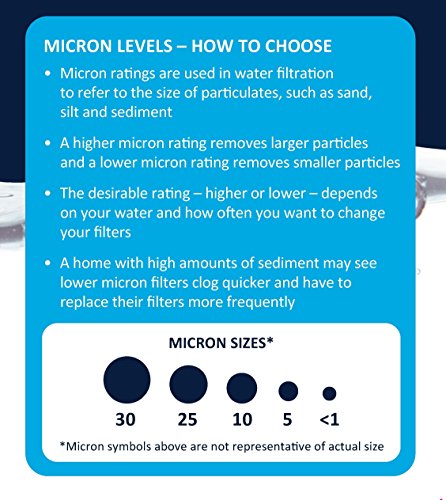 - Less than 1 micron filter – the lower the micron rating the more particles or contaminants removed by a whole house filter
