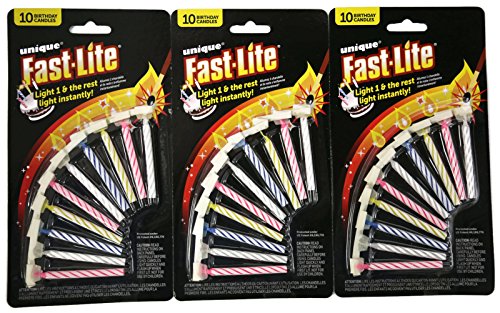 3 Packages of 10 Assorted Fast Lite Birthday Candles