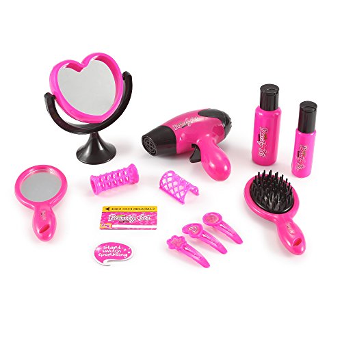Product Description Our SPARKLE hairdresser pretend play set will be one that your girl will love! The set comes with a toy hairdryer, a brush, hair clips, front and back mirrors, as well as shampoo conditioner bottles. This will be the ideal set for any party or play dates. 0