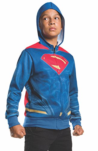 -. Binding : Toy -. Brand : Rubie's -. ClothingSize : One Size -. Color : White -. Department : unisex-adult -. Feature : Includes One Hoodie -. Label : Rubies Costume Co -. Manufacturer : Rubies Costume Co -. MPN : R620620 -. PackageQuantity : 1 -. PartNumber : R620620 -. ProductGroup : Toy -. ProductTypeName : CHILDRENS_COSTUME -. Publisher : Rubies Costume Co -. Size : One Size -. Studio : Rubies Costume Co -. Title : Rubie's Costume Batman v Superman: Dawn of Justice Superman Child Hoodie