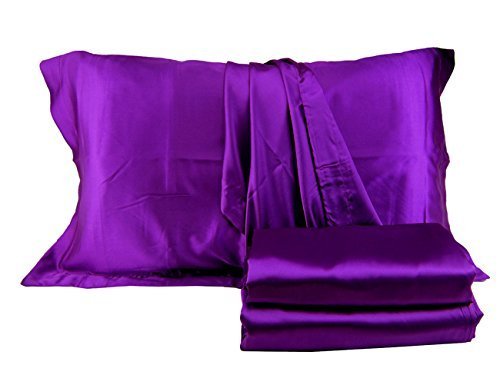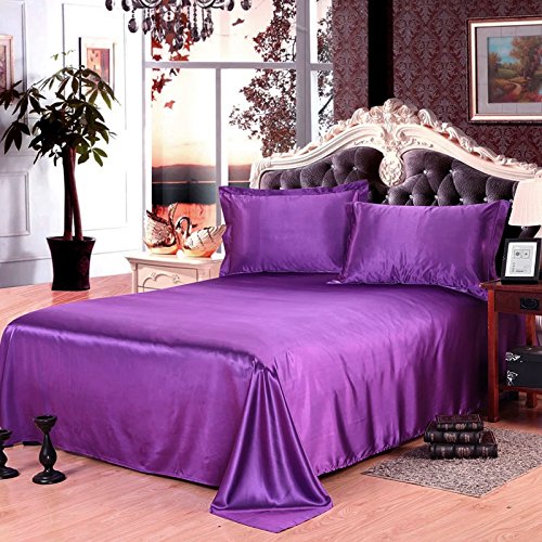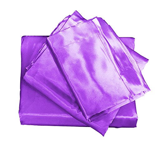 Brandream Silky Satin Bed Sheet Set Soft Purple Sheets Queen Size,4pc