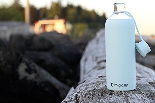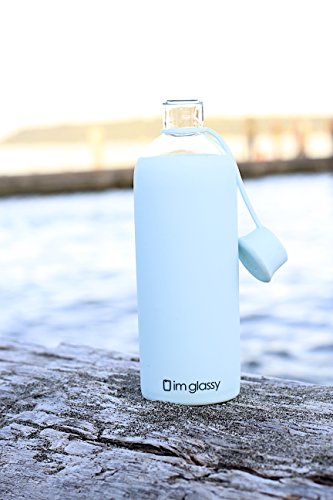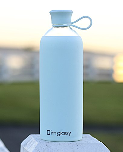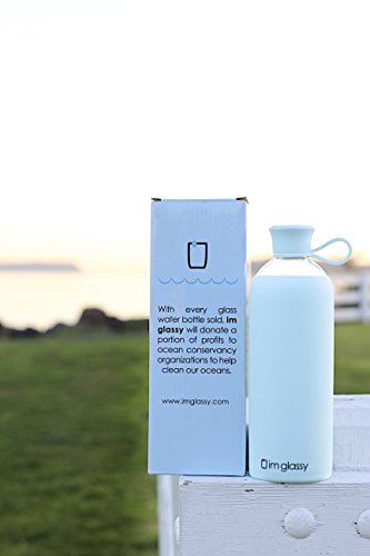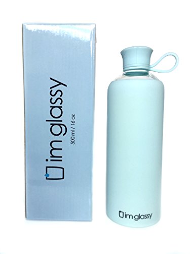 Plastic Free Glass Water Bottle With Silicone Sleeve - 16 oz BPA Free Borosilicate Bottle Shape - Beverage Juice Smoothie Drink Storage - Pure Blue - Easy Open Lid