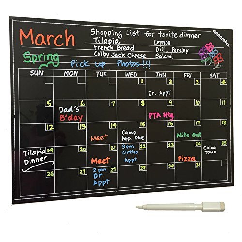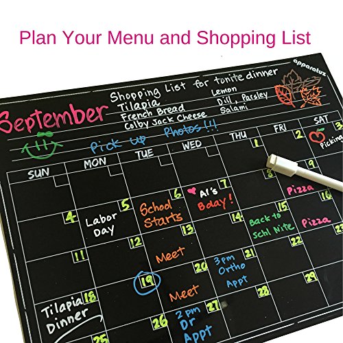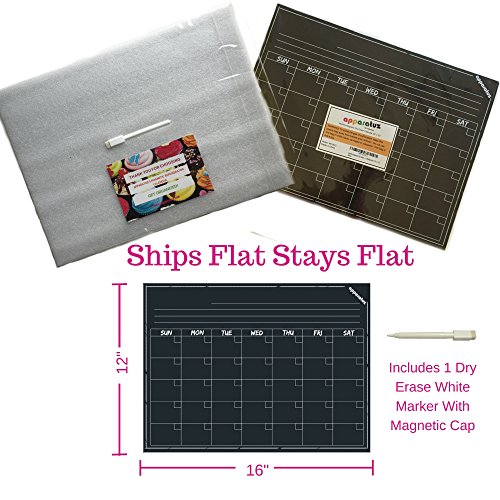 Magnetic Calendar - Smart Dry Erase Board For Your Refrigerator, Kitchen & Office. Stylish Black Chalkboard Monthly Design Planner For All Your Kids Activities + 1 White Liquid Chalk Marker (16"x12")