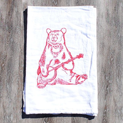 -. Title : Flour Sack Dish Towel Cotton Kitchen Table Linens Red Banjo Bear