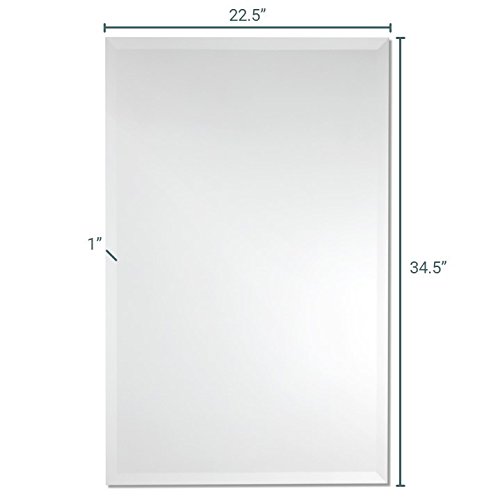 - CLASSIC DESIGN: A longstanding bestseller, this simple yet sophisticated beveled rectangle wall mirror is a highly versatile design. Measuring 22.5-inches x 34.5-inches, this mirror features a sleek and modern 1-inch beveled edge. Our premium silver backing prevents corrosion in humid environments, making this an ideal mirror for your bathroom vanity, powder room, or any other room of your home.