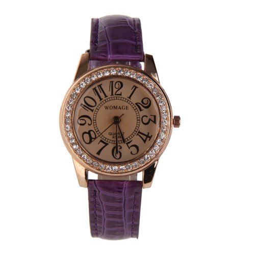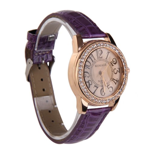 - Title : Vktech Fashion Women Wristwatch PU Leather Band Alloy Round Face with Crystals (Purple)
