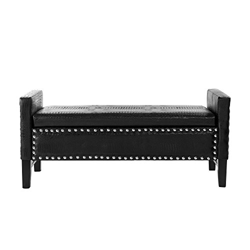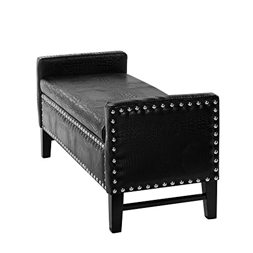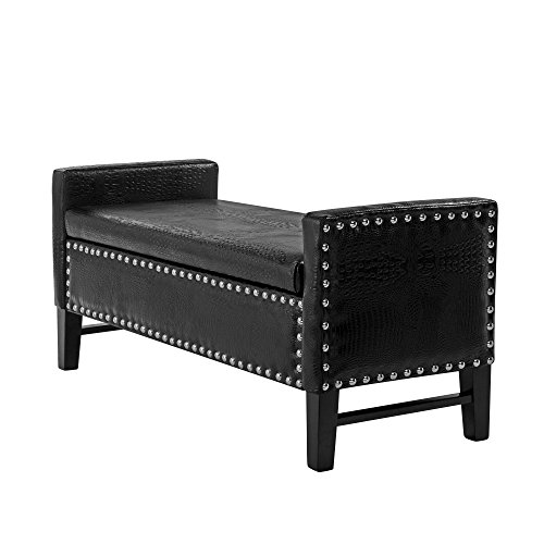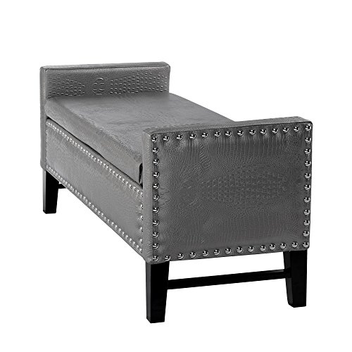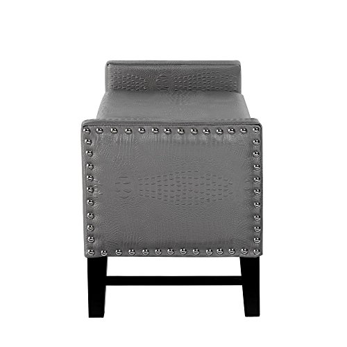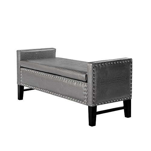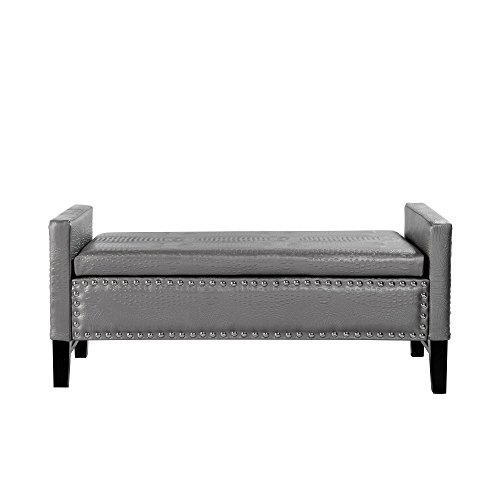 -. Brand : Iconic Home -. Feature : Country cottage linen storage bench / Dark grey linen seat with built in storage on solid birch legs with X design / Chic silver nailhead trim and button tufting for added style and comfort / Kid friendly adjustable safety hinged lid reveals spacious storage compartment / High density foam seating -. Label : Iconic Home -. Manufacturer : Iconic Home -. Model : Jesse -. ProductGroup : Furniture -. ProductTypeName : HOME_FURNITURE_AND_DECOR -. Publisher : Iconic Home -. Studio : Iconic Home -. Title : Iconic Home Jesse Modern Button Tufted Storage Bench