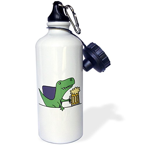 -. Title : 3dRose All Smiles Art Food and Drink - Funny Trex Dinosaur Drinking Beer Cartoon - 21 oz Sports Water Bottle (wb_244616_1)