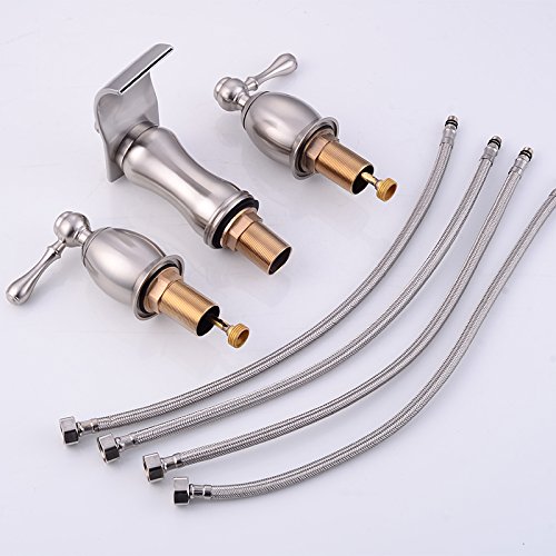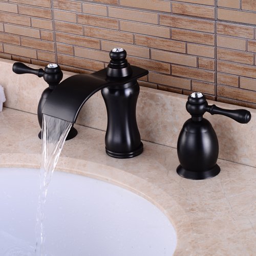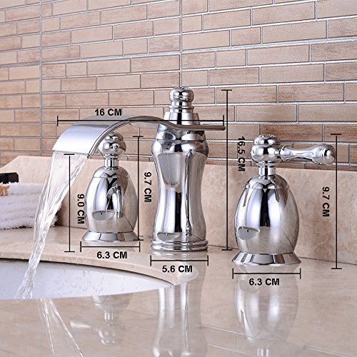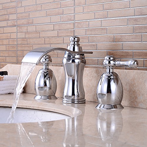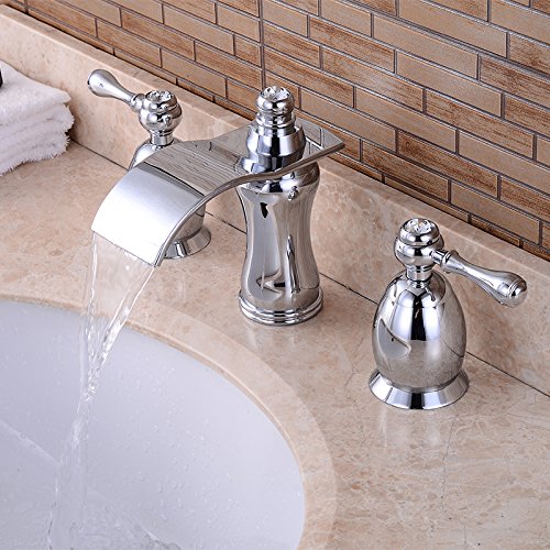 -. Title : Wovier Chrome/Brushed Nickel/Oil Rubbed Bronze Waterfall Bathroom Sink Faucet,Two Handle Three Hole Vessel Lavatory Faucet,Widespread Basin Mixer Tap