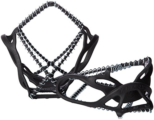 Studio : Yaktrax Publisher : Yaktrax Binding : Apparel Product Description When you walk or run with Yaktrax Traction Device, every step you take places over 450 biting edges in direct contact with the ice beneath your feet. As you transfer weight onto your foot, hundreds of Skidlock surfaces squeeze into the ice, providing you with stability in all directions -- forward, backward, and side to side. The flexible molded plastic frame slips easily over the sole of your shoe or boot and remains firmly in place. The steel coils are specially-treated for durability and rust-resistance. And, without spikes or sharp edges, Yaktrax won't damage carpet or wood floors. Perfect for everyone who has to negotiate slick snow and ice, including walkers, runners, delivery people, construction workers and public safety officers. Only 2.8 oz. each.