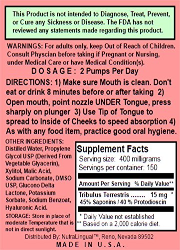 -. Title : Tribulus Terrestris 150 DAY (45% Steroidal Saponins / 40% Protodioscin) Sublingual 15 mg (Equivalent to 1,500 mg Oral Dose) by NUTRA Lingual™ for Maximum Absorption—Natural Testosterone Booster