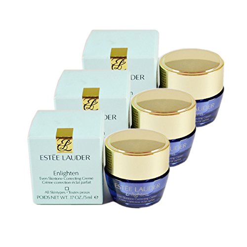 -. Feature : Estee Lauder Enlighten Even Skintone Correcting Creme / Trial Size 0.17 oz/5 ml each / 3 jars in one package / Enlighten Even Skintone Correcting Crème is formulated with proven, targeted skin brighteners and powerful antioxidants and anti-irritants. The hydrating formula restores radiance immediately. By night, it infuses skin with intense moisture, soothes and calms irritation, refining skin texture and brightening its overall appearance. By day, it maintains skin's ideal moisture balance to help defend against the irritation that can cause future spots.