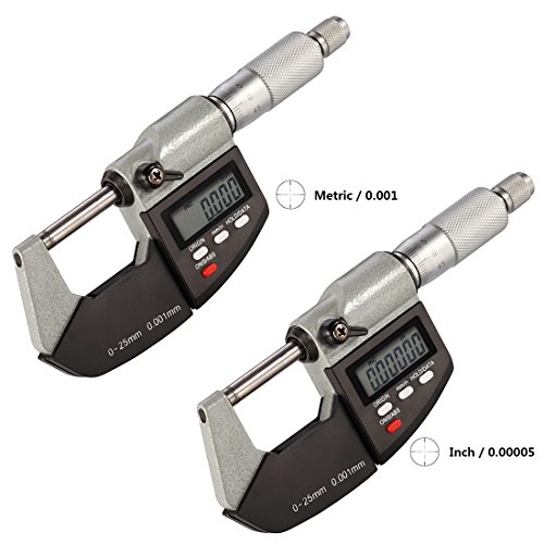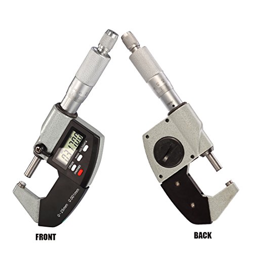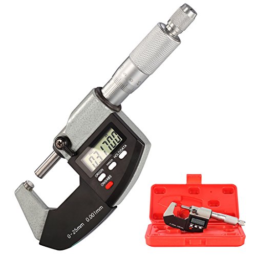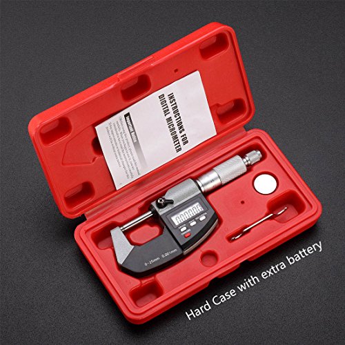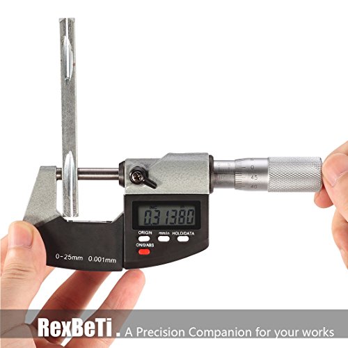 Electronic Digital Micrometer Caliper 0-1 Inch / 0-25 mm Inch/Metric Conversion with Large LCD Display by RexBeTi, Hard Case with Extra Battery