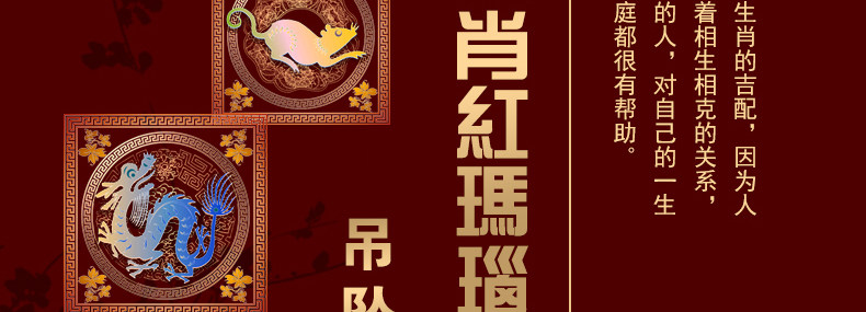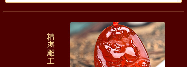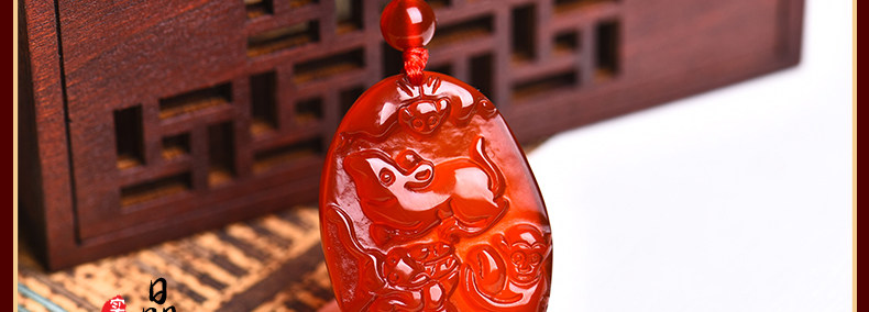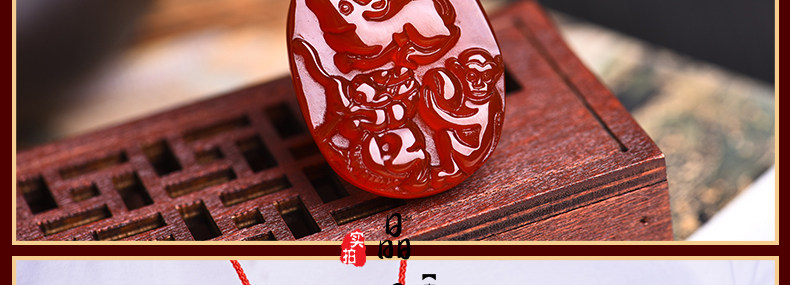 开光 天然红玛瑙申子辰吊坠 鼠龙猴三合贵人男女项坠