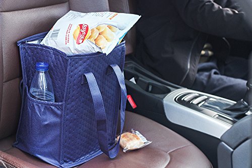 SELF-STANDING & COLLAPSIBLE:Removable PP bottom keeps the grocery bag standing by itself in your trunk and fridge ,and matel zipper closured,so nothing will slide around.Fold flat for easy storage when it not in use.
