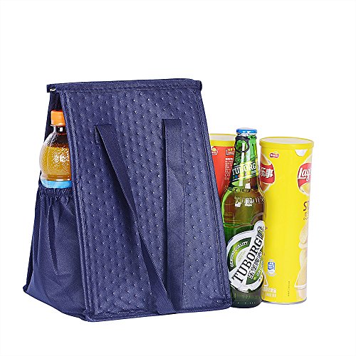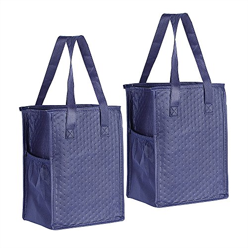 ATBAY Reusable Grocery Bags Non-woven Foldable Insulated Shopping Bags with Removable Bottom Insert,Navy blue(Pack of 2)