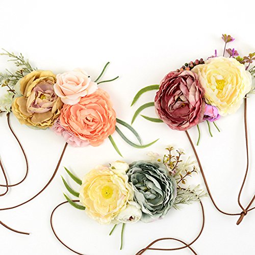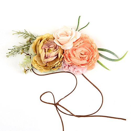 Women Girls Tieback Flower Crown, Aiernuo Photo Prop Flowers Crown Hairband for Birthday Party Wedding Festivals (Champagne)