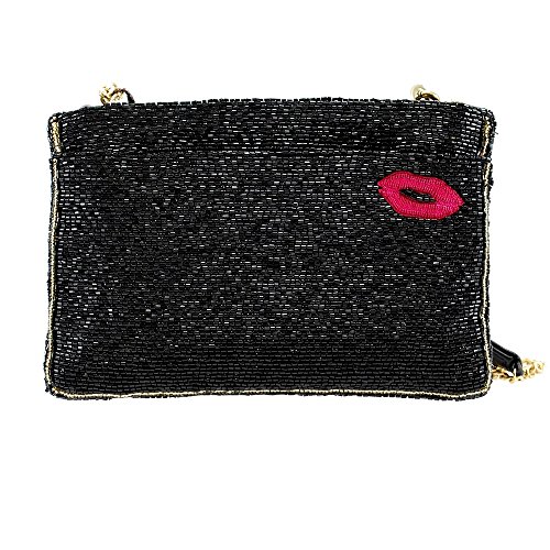 MARY FRANCES Kiss Me Beaded Lipstick, Embroidered Kisses Top-Zip Cross-Body Mini Handbag