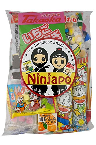 -. Binding : Misc. -. Brand : Ninjapo -. EAN : 4562417998739 -. Feature : "Dagashi" is a Japanese cheap sweets and snacks popular among children. / Assorted 20 packs of Japanese popular snacks. / Suitable for party goods, free gift, tea break and so on. / Economical pack to share with friends and families. / Made in Japan -. ProductGroup : Grocery -. ProductTypeName : GROCERY -. Title : Assorted Japanese Junk Food Snacks "Dagashi" 20pcs Ninjapo Package Sweets Candy