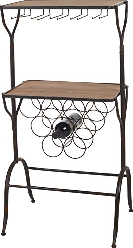Transpac Metal/Wood 2-Tier Shelf with Wine Holder