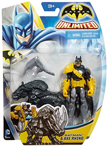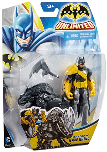-. Binding : Toy -. Brand : Mattel -. Color : Multi -. EAN : 0887961050189 -. Feature : Batman and Axe Rhino are ready to battle any villain / Highly detailed 4-inch figures / Features Iconic colors, expressions, and styling / Includes 1 Batman figure and 1 massive cool accessory / Collect all your favorite DC Super heroes and villains -. IsAdultProduct : 0 -. Label : Batman -. Manufacturer : Batman -. Model : CDV94 -. MPN : CDV94 -. PackageQuantity : 1 -. PartNumber : CDV94 -. ProductGroup : Toy -. ProductTypeName : TOYS_AND_GAMES -. Publisher : Batman -. Size : Standard -. Studio : Batman -. Title : Batman Unlimited: Batman and Axe Rhino Action Figures -. UPC : 887961050189 -. Warranty : 1 year warranty against manufacturer defects