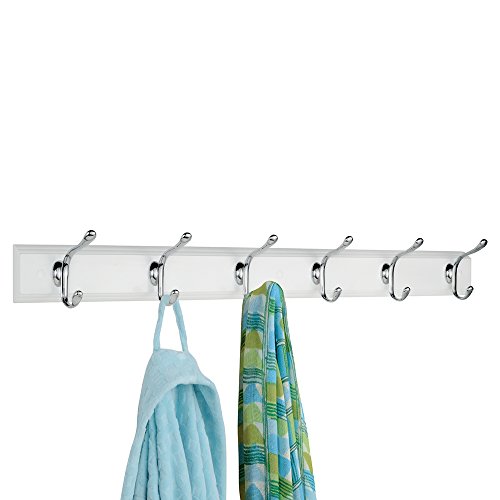mDesign Wall Mount Entryway Storage Rack for Jackets, Coats, Hats, Scarves - 12 Hooks, White