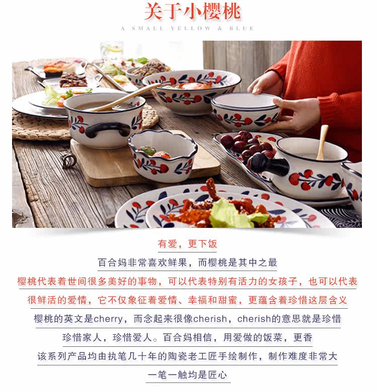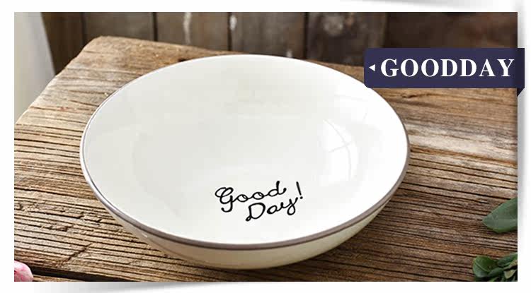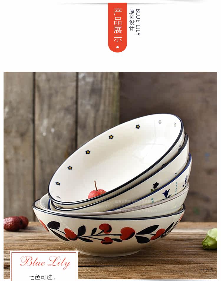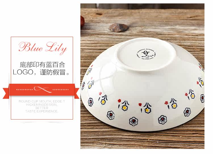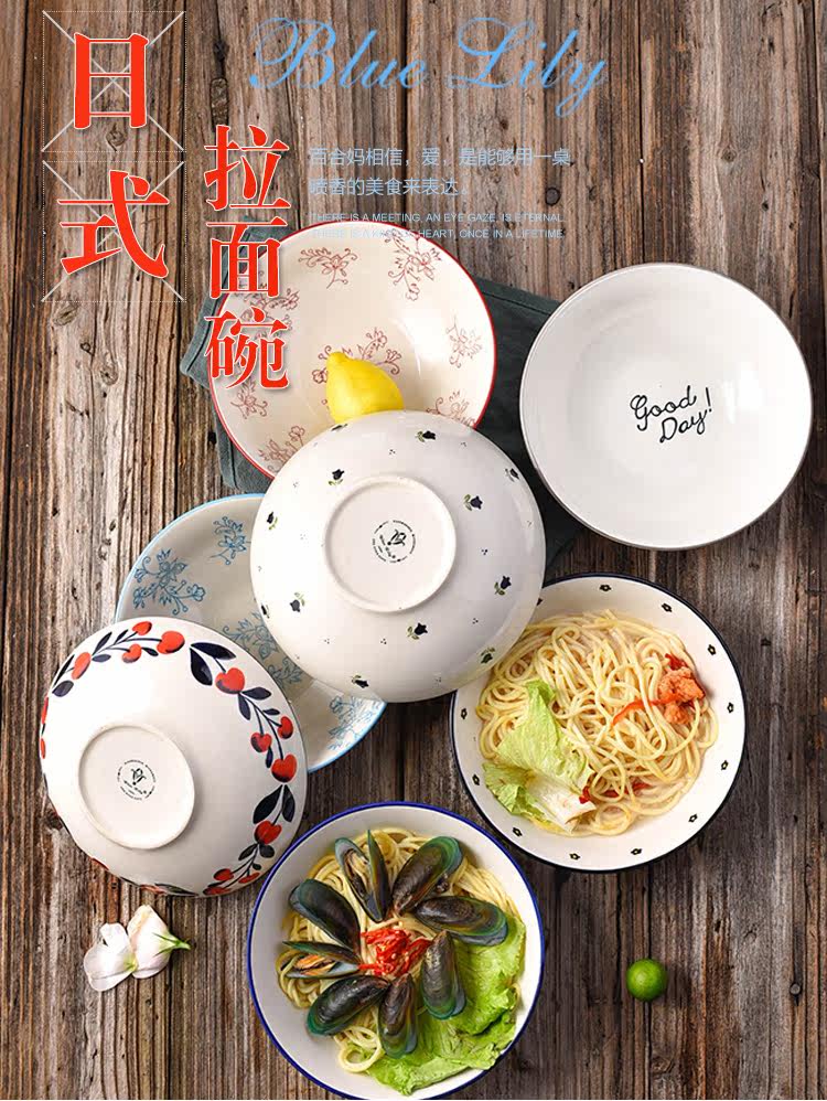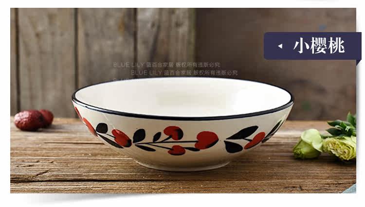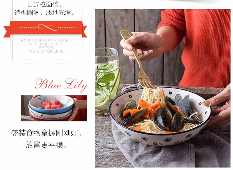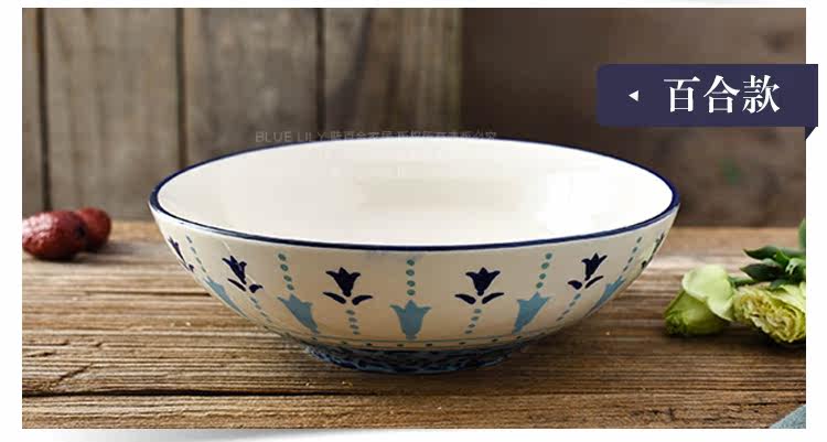 蓝百合创意陶瓷水果沙拉碗西餐意面盘家用饭碗汤碗冷面碗大号汤盆