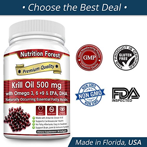 Nutrition Forest Krill Oil capsules are easy to swallow and leave no fishy taste. This is pure and contains no artificial ingredient. It consists all types of omega 3 - ALA, EPA and DHA along with omega 6 and 9. 500mg per serving is enough to boost your immunity, joints health, eye health, brain function, muscles strength and blood pressure. It's a FDA approved supplement.Feature