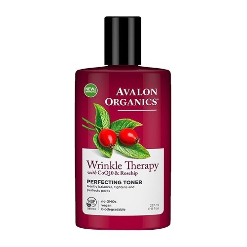 Avalon Organics Wrinkle Therapy Perfecting Toner, 8 Fluid Ounce. Wrinkle Therapy with CoQ10 & Rosehip, for lines and wrinkles. This Perfecting Toner purifies and tightens pores, rebalances natural moisture levels and fortifies skin with antioxidants.Wrinkle Therapy with CoQ10 & Rosehip, for lines and wrinkles. As skin ages and its cellular metabolism slows, collagen and elastin production gradually deteriorates causing wrinkles and sagging. This slowed metabolism is due in part to a decline in the skin's natural levels of Co-Enzyme Q10 and other energy sources. Studies show that supplementing the skin's natural CoQ10 production can help reverse and prevent these visible signs of aging. Wrinkle Therapy features a carefully selected blend of powerful natural wrinkle fighters. CoQ10 will boost skin energy levels to encourage regrowth of collagen and elastin; Rosehip Oil, high in potent antioxidants, provides intense free radical defense and promotes healthy skin rejuvenation; Hyaluronic Acid helps skin attract and retain moisture, resulting in a dewy, resilient and smoother surface texture. When skin is re-energized and its natural defenses are reinforced, it becomes firmer and more elastic, the appearance of lines and wrinkles fade and its overall complexion appears more youthful and healthy. Avalon Organics is grounded in the knowledge that all beauty begins within the Earth. Guided by the wisdom of nature, each product is thoughtfully crafted for optimal effectiveness while meeting a strict organic standard. Formulas contain carefully selected botanicals that are nurtured by the elements then tenderly harvested to nourish the body from the outside in. Deep rooted beauty is at the heart of the Avalon Organics Guiding Principles – ensuring that every product reflects a deep reverence for the planet and all it provides and contributes in its own small way to a holistic lifestyle of health, wellness and sustainability.Feature
