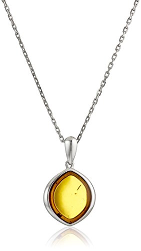 Rhodium plated sterling silver delicate necklace with light honey amber marquise-shaped modern high-polish frame pendant