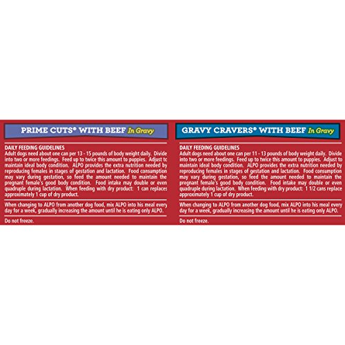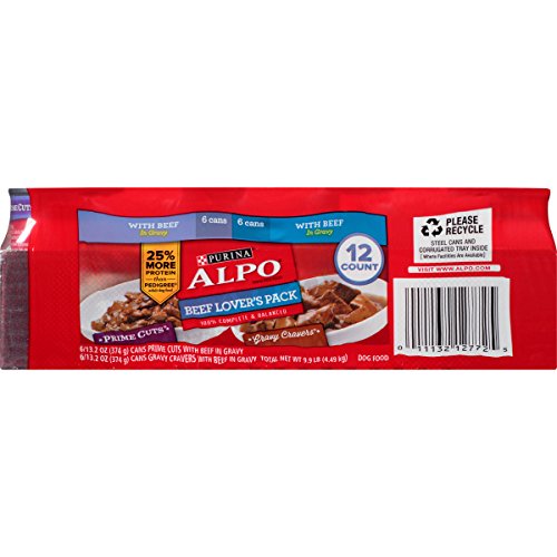 -. Binding : Misc. -. Brand : Purina ALPO Brand Dog Food -. EAN : 0011132127725 -. Feature : One (1) 9.9 lb. Tray - Purina ALPO P.R.Ime Cuts/Gravy Cravers Beef Lover's Pack Dog Food / Made with real beef / Smothered in savory gravy / Two different recipes for variety in his diet / Contains high-quality protein sources -. Label : Nestle Purina Pet -. LegalDisclaimer : We recommend that you do not solely rely on the information presented and that you always read labels, warnings, and directions before using or consuming a product -. Manufacturer : Nestle Purina Pet -. MPN : 001113212772 -. NumberOfItems : 1 -. PackageQuantity : 1 -. PartNumber : 001113212772 -. ProductGroup : Pet Products -. ProductTypeName : PET_SUPPLIES -. PublicationDate : 2011-11-27 -. Publisher : Nestle Purina Pet -. Size : 13-14 oz can -. Studio : Nestle Purina Pet -. Title : ALPO P.R.Ime Beef Lovers Dog Food Variety Pack, 9.90-Pound -. UPC : 011132127725
