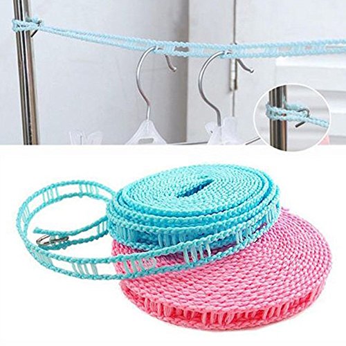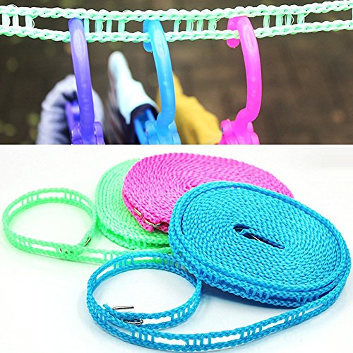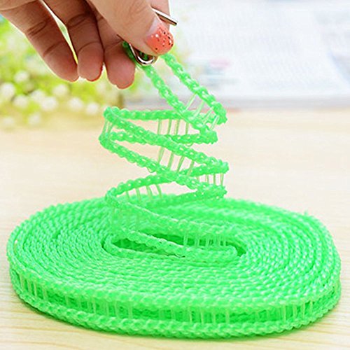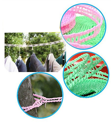 LOHOME Pack of 2 PCS Clotheslines Portable Windproof Clothesline Nylon Clothes Rope Line for Outdoor Indoor Home Travel Drying (5M/16.4ft, Green)